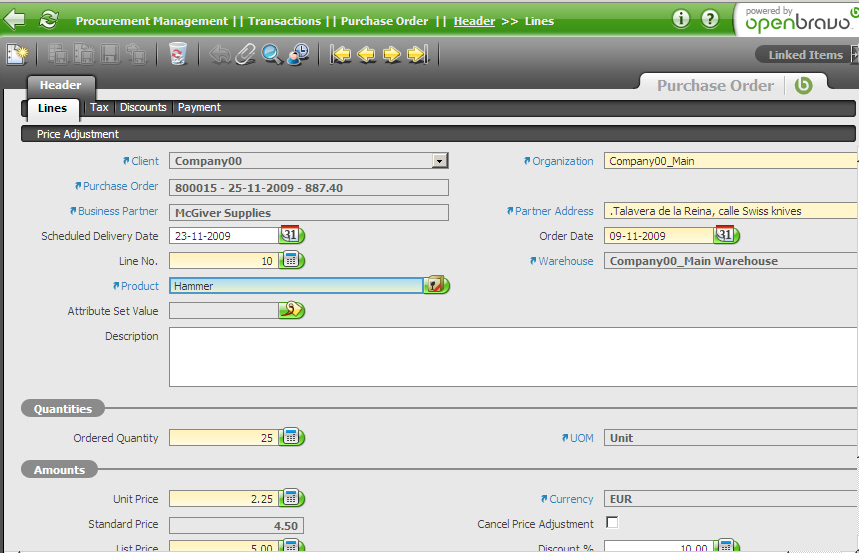 | feature request | [Openbravo ERP] 03. Procurement management | major | always | 2009-12-02 12:43 | 2011-02-04 09:11 | |||||||