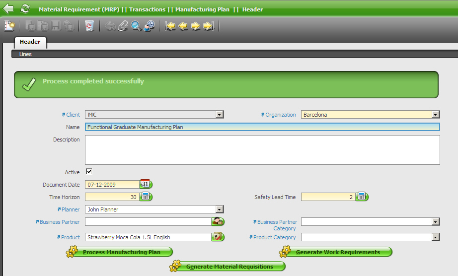 | feature request | [Openbravo ERP] 06. Material requirement planning (MRP) | trivial | always | 2009-12-07 18:43 | 2011-02-04 09:11 | |||||||