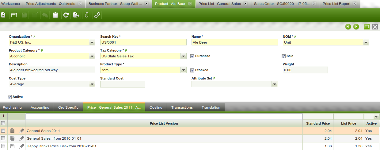 | Steps To Reproduce | Go to a product and check the price tab. See which price list versions the product appears on and make one of them inactive. Going back to the price tab on the product you will see that the price list version still appears. When you display the column 'Active' the price list version is still showing as Active, which is confusing. | |||||||||||
