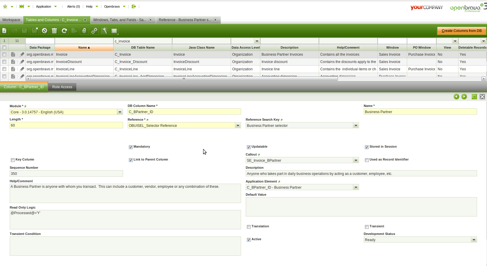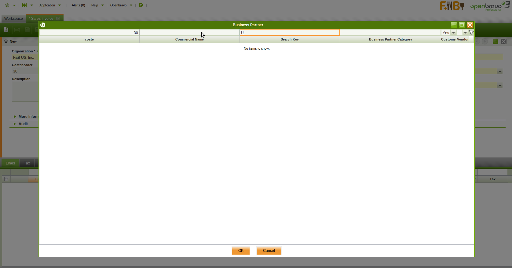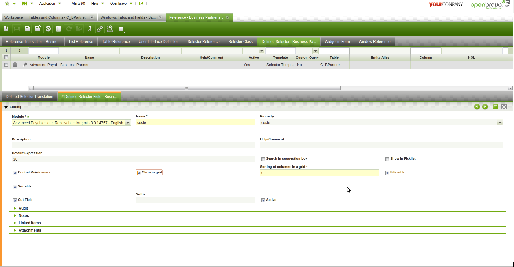 | Steps To Reproduce | Go to "Database": -Go to table "C_invoice", and create one column with the next expecications: +costeheader numeric(10,0) DEFAULT 30 -Go to table "C_bpartner" and create one field with the next expecification: +coste numeric(10,0) DEFAULT 10 Now go to the application as "System administrator": -Go to "Tables and Columns" window. -Choose the table "C_bpartner" and push in button "Create Columns from DB" (the application said that one column is added). -Now choose the table c_invoice and push again the button "Create Columns from DB" (one column will be added). -Also in this table, go to column "Business Partner" and change the reference [reference.png] -After that, go to "Reference" window and find the record whose name is "Business Partner selector". -Navigate to tab "Define Selector--> Defined Selector Field" -Create new field [field.png] -After that, go to window "Windows, tabs, and Fields" and find the window "Sales Invoice". -Inside the window "Sales Invoice", select the tab header and push in button "Create Fields" (one field will be added). -Open this field "Costeheader" and put it in the combo "Selector Out Field" the value "coste". -Shut down tomcat and turn on. Now as "Group Admin" go to window "Sales Invoice" and create a Header. -Push in the icon "magnifying glass" of the "Business Partner" selector you will see that you don't see nothing because we have create the column coste with default value of 10 and we are prefiltering by 30[empty.png] -Now, as "System Administrator", go to window reference and to the record whose name is "Business Partner selector", tab "Define Selector--> Defined Selector Field" and choose the field that we have define previously. -Uncheck the checkbox "Show in Grid" -Now come back again as "Group Admin" to the "Sales invoice" Window, create a headre and push in the "magnifying glass" of the "Business Partner". You will see empty but if you write something in any filter, the default filter is out.[full.png] | ||||||||||