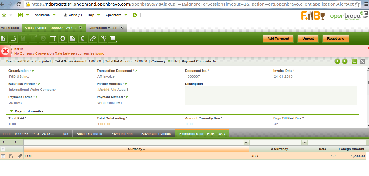 | Summary | 0022876: "No Currency Conversion Rate between currencies found" in "Add Payment" process although conversion rate at doc level is defined | |||||||
