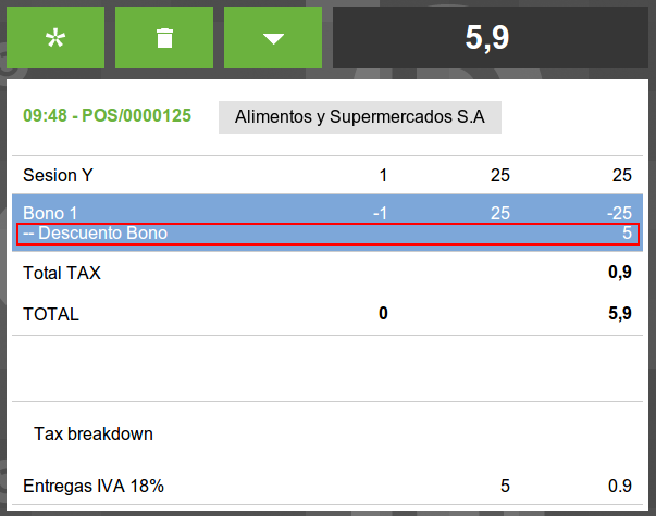 | Steps To Reproduce | 1) In the backend, create a new product, for example service Y, assign a price of 25 €. 2) Create a new gift voucher (voucher X)(http://wiki.openbravo.com/wiki/Retail:Gift_Cards_and_Gift_Vouchers [^]) with a price of 50€ and in the "gift voucher summary" tab, create a new record with service Y as product and quantity = 2 3) In the [Promotions and Discounts] window create a Fixed Percentage Discount of 20% for voucher X 4) In WebPOS, buy one voucher X for a client. The system correctly applies a 20% discount. 5) Buy one unit of service Y and use voucher X to pay it. The system generates one line with negative price -25 € but also adds an extra line of 20% discount (-5 €). The result is that the customer has to pay 5 €, but the result should be that the customer must not pay anything. | |||||||
