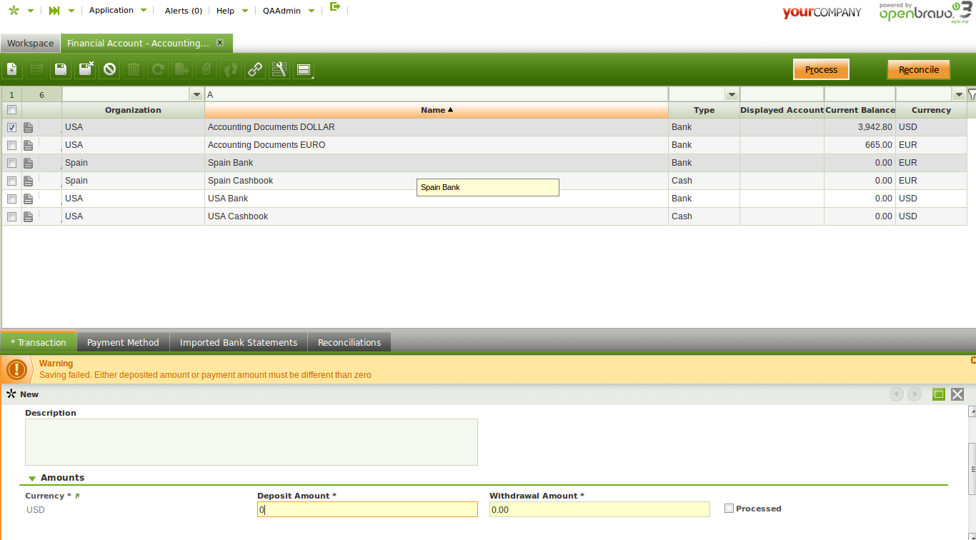 | Summary | 0029807: In "Financial Account" window, there is a warning message that should be an error message | |||||||