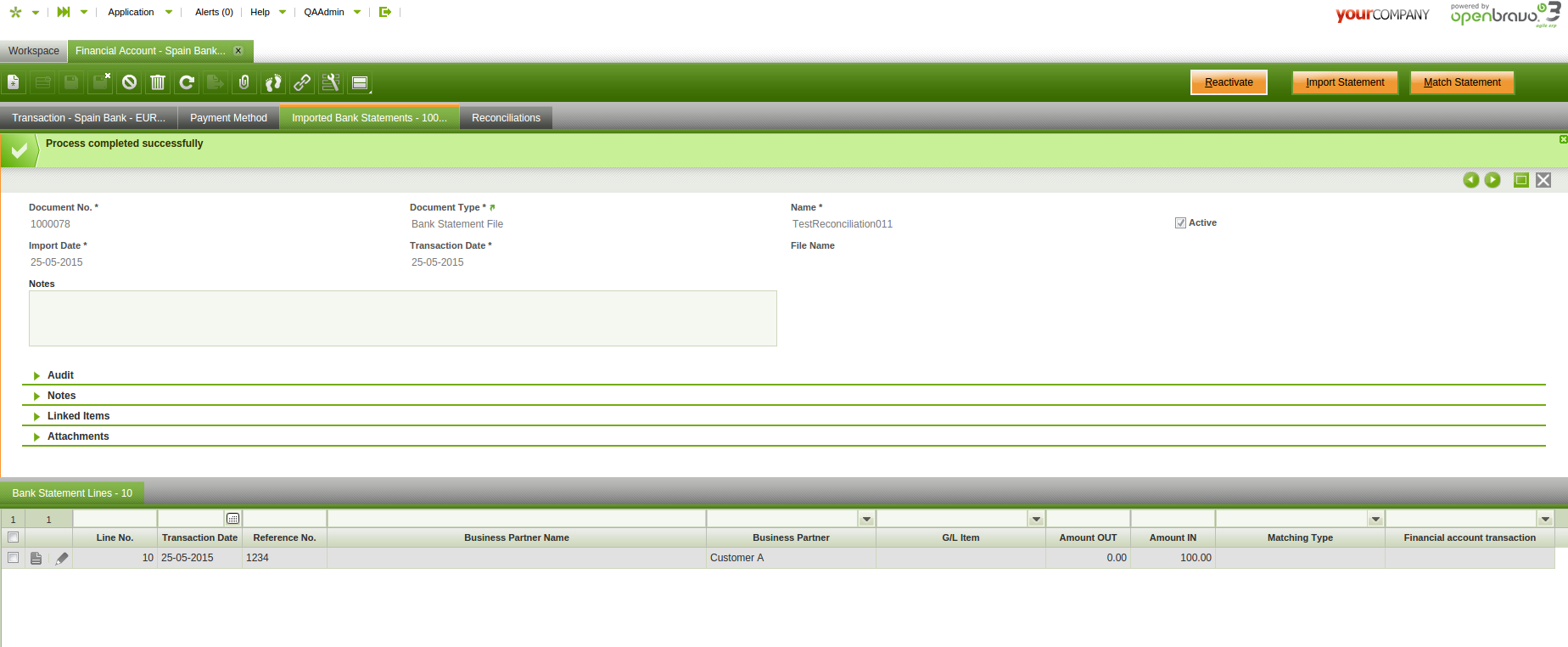 DescriptionRepeat an instruction lets user to process a Bank Statement when it should not be possible