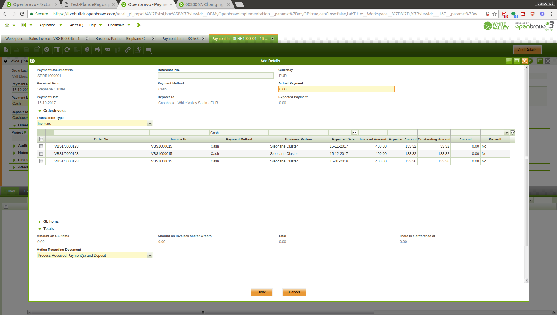 . click in "Add Details": previous invoice is displayed, but only one payment detail (see attachment wrongPaymentInDetails.png)