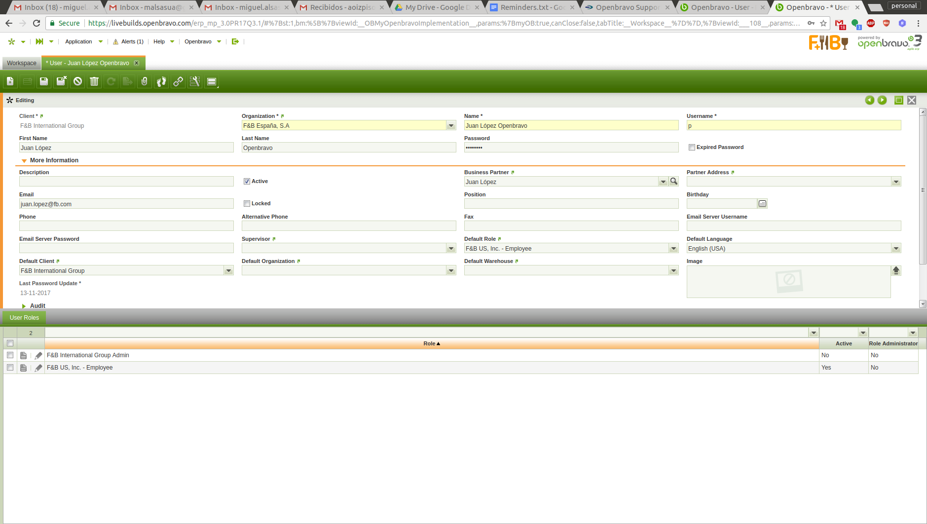 | Steps To Reproduce | 1. Login as "F&B International Group Admin" role with "Openbravo" user. 2. Go to [User] window and select Openbravo user. 3. Go to [User Roles] subtab and deactivated a role.(e.g. "F&B US, Inc. - Employee"). 4. Do logout and login with previous user. 5. Open [User profile widget] and open the role dropdown. --> Check than deactivated rol is shown. | |||||||
