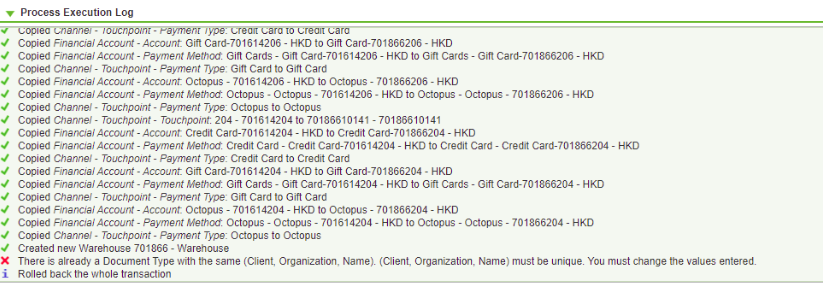 2020-10-16 15:31:52,976 [http-8] ERROR org.openbravo.retail.copystore.process.CopyStoreProcess - Error in copy store:There is already a Sequence with the same (Client, Organization, Name). (Client, Organization, Name) must be unique. You must change the values entered.