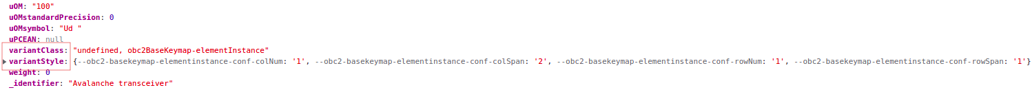 | Steps To Reproduce | 1- Add a product into the ticket 2- In dev tools type "OB.App.State.getState().Ticket.lines[0].product" in order to check the information of the added product. Note it contains some properties which are coming from the ProductButton component itself: "variantClass", "variantStyle", "leftAction" etc. | |||||||||||
