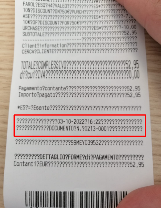 The issue must be closed as the EPSON team confirmed that the fiscal transactions (Documenti Commerciali) and the management transactions (Documenti Gestionali) follow different sequences, so have a different document number. In case of a reprint, that is a management document, will print the original transaction document number as part of the original ticket info and then at the bottom will get its own document number as management document number. |