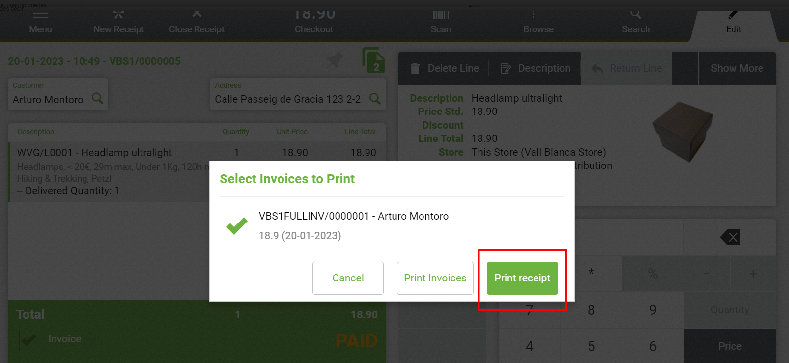 | Steps To Reproduce | -Login a terminal. -Do a sale, invoice it. -Pay and complete. -Recall the order. -Select the 'Print' menu entry. -Check that you can print even the receipt and/or the invoice. -Go to the backoffice and disable the 'Web POS action print receipt'preference (or set it to 'N' for your environment. -Refresh the terminal and repeat the process. Check that the 'Print' menu entry is not available anymore so you cannot reprint neither the receipt nor the invoice. | |||||||