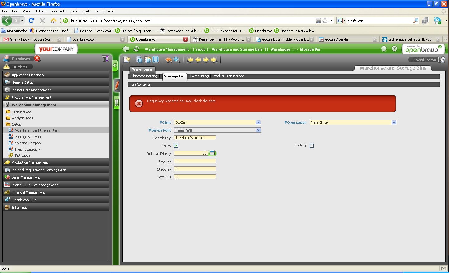 | Description | In warehouse storage bin creation, using non-unique X, Y and Z parameters results in an error message, referring to the Unique Key, which for the user is the Search Key (that is unique in the example, see image). User gets stuck and can“t finish task. | ||||||||||