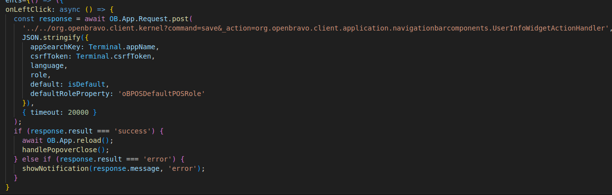 | Description | In the ProfileSelector component in core2 there's a hardcoded POS value in the parameters of a request to the UserInfoWidgetActionHandler endpoint. See the image for more information. This leads to an error if this component is used in an environment without the retail.posterminal module. | |||||||