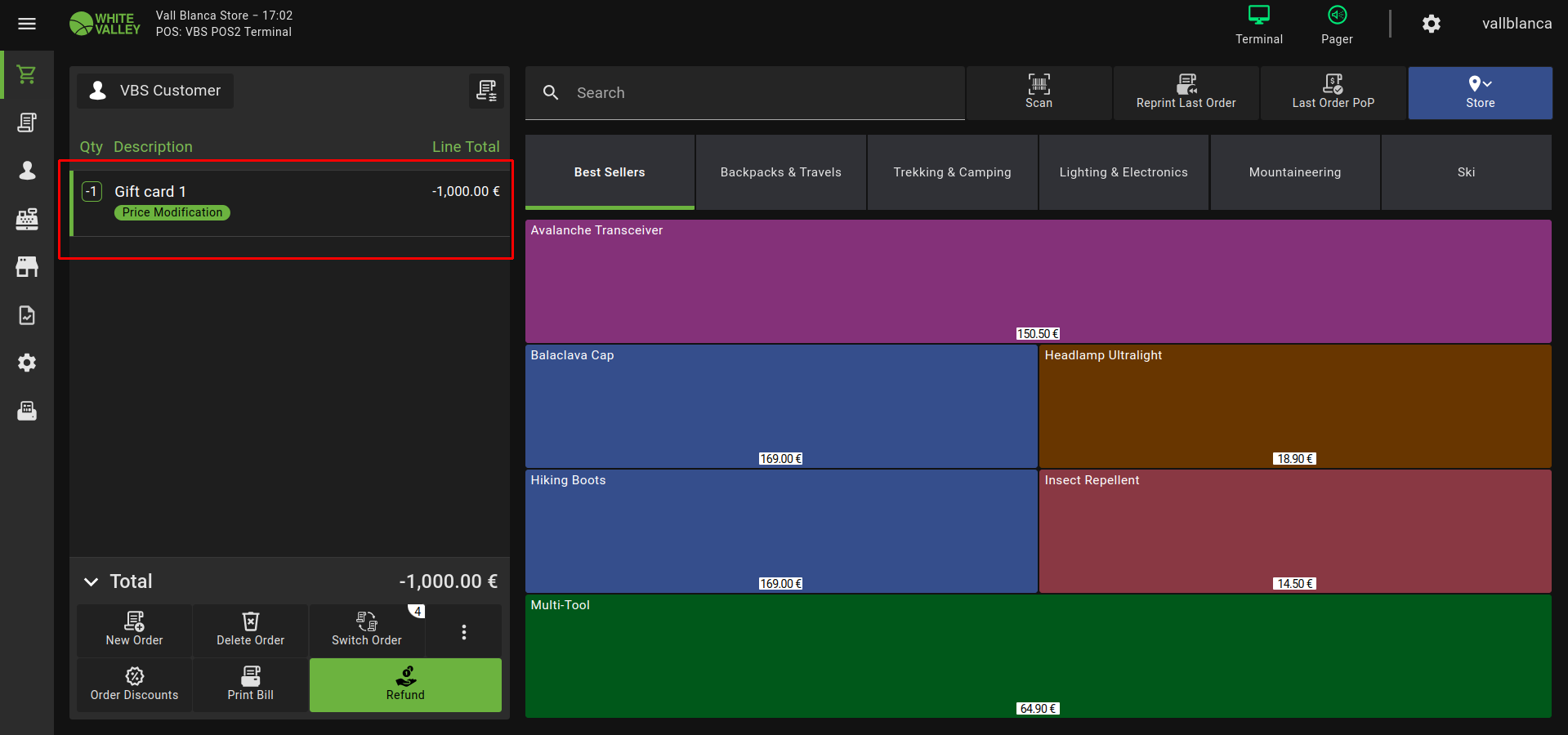| Description | When a Gift Card is configured as a payment line and has been sold but not yet used, pressing the 'Refund' button displays the 'Price modification' label when the card is added to the Refund Create a Gift Card configured as payment line, ensure 'Returnable' checkbox is selected Sell the Gift Card in POS2 | |||||||