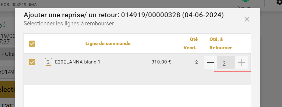 | Steps To Reproduce | finalize a sale with a Product in quantity N>1. create a verified return of the previous sale add the same product in the quantity N>to the quantity in the previous sale. click on the product to be returned , -Click on exchanged -a pop up is opened update the product by clicking on '+' Expected result : the quantity should stop to be updated and the '+' should be grayed when the quatity to be return is reached . The same way when you make a verified return and update the quantity to return : | |||||||