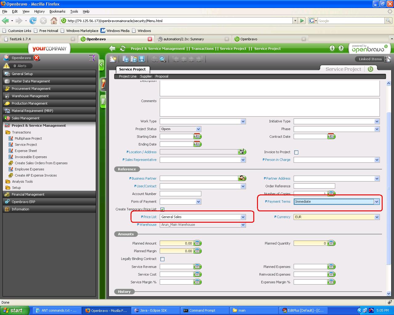 | Summary | 0009666: Openiing a new record in Service project displays payment terms and price list | |||||||