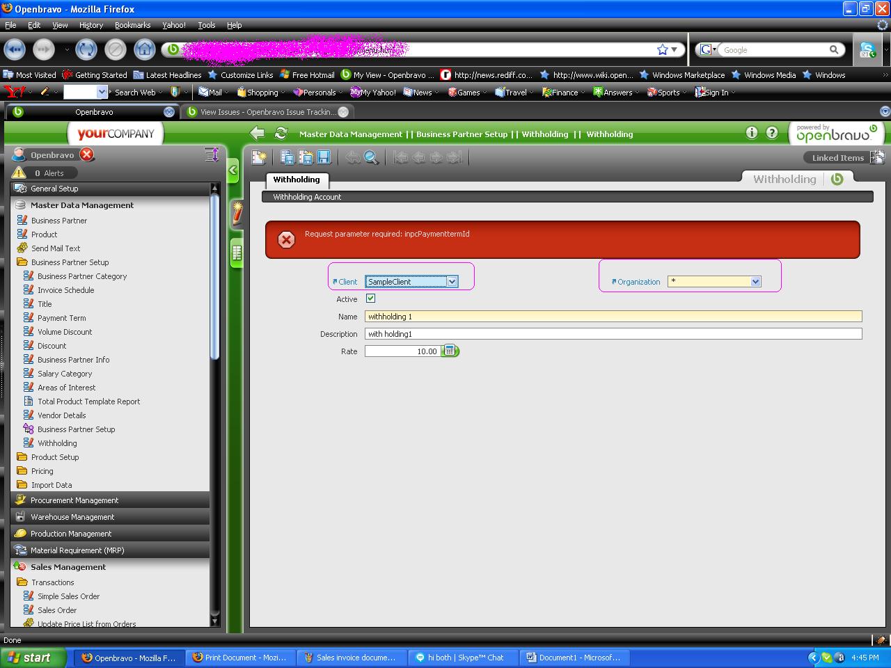 | Summary | 0010046: Not able to create withholding for the newly created client | |||||||