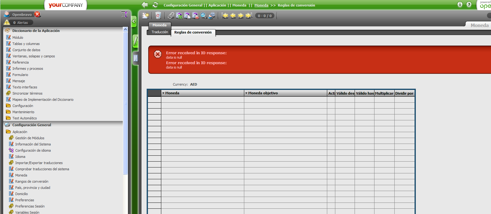 | Steps To Reproduce | 1. Login 2. Go to General setup->Application->Currency 3. Click several time in the menu currency entry and then into conversion rate tab until you get the error SEE ATTACH | |||||||