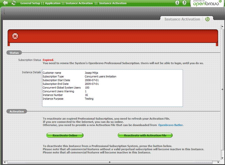 Documentation: http://wiki.openbravo.com/wiki/ERP/2.50/Professional_Subscription_Manual#License_Expiration [^] |