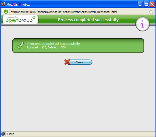 Tested success message appears as below "Process completed successfully Number of unposted documents = X, Number of deleted journal entries = Y" |