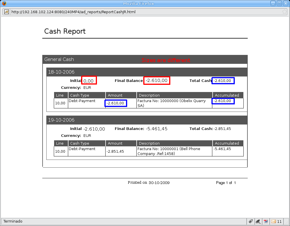 | Steps To Reproduce | * Execute Financial Management || Receivables & Payables || Analysis Tools || Cash Report || Cash Report and Financial Management || Receivables & Payables || Analysis Tools || Bank Report || Bank Report * Realize that quantities size is not the same for all fields See image attached | |||||||