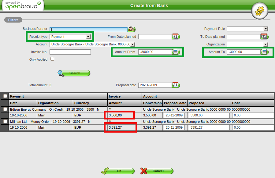| Summary | 0011445: In Bank Statement's 'Create Lines From' the filter by amounts works wrong. | |||||||