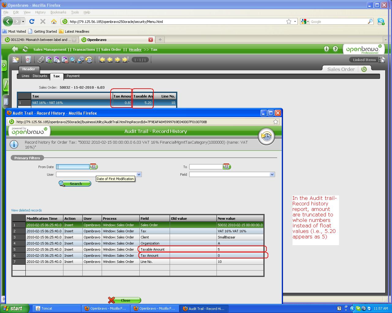 0012263: In the Audit trial - Record History report, amount values are truncated to nearest whole numbers