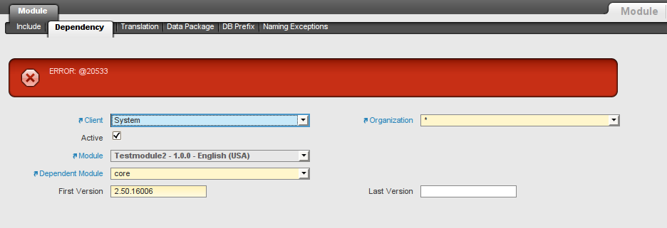 | Summary | 0012357: Strange error message when setting dependency for a module not in development | |||||||