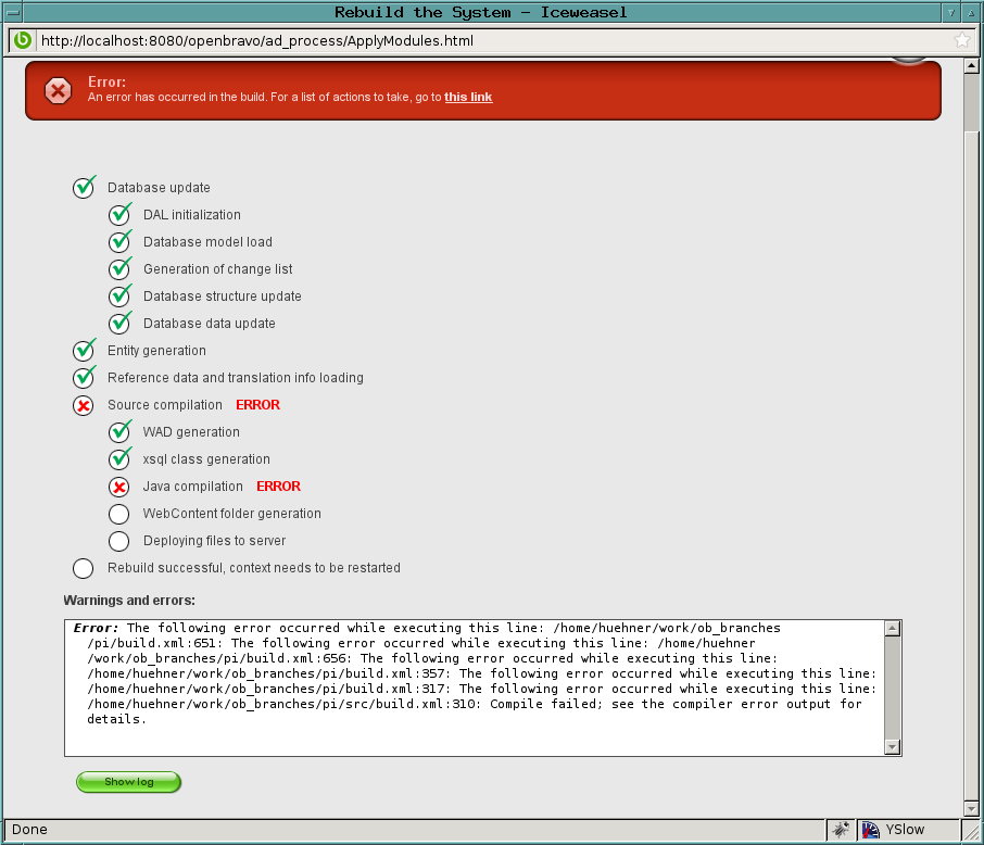 However now all details about the compile errors are missing from the rebuild popup (no clue at all), and are only available from the 'Show log' popup.