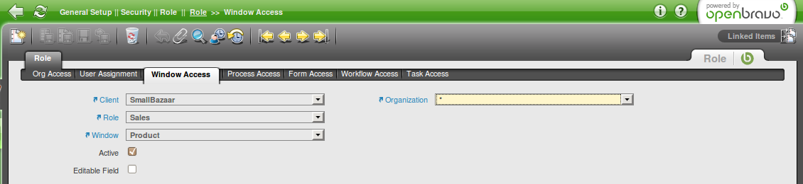 If you are suffering from this issue for any of your roles this is a temporary workaround: 1) With a Client Administrator role, navigate to General Setup || Security || Role 2) Select the role affected by the issue and go to "Window Access" tab. 3) Create a new record for window "Product" and "Editable Field" = N (see screenshot). 4) Log in with this role the UOM of the product will be correctly selected now. |