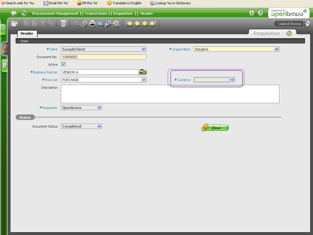 | Summary | 0012842: Currency value not assigned in Requsition header page. | |||||||
