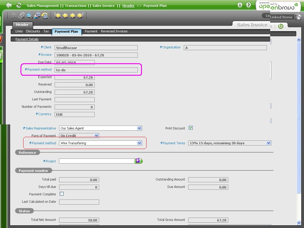 | Description | While Generating payment Plan, Payment method is assigned to "to-do" by default even if i picked different payment method in the header tab. | |||||||