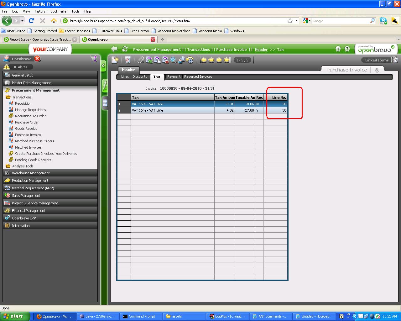 | Summary | 0012916: Line numbers are changed for Tax records in purchase invoice before and after completion | |||||||