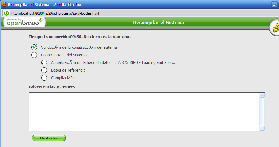 | Description | With language as Spanish and an Openbravo installed in windows there arewith spanish accent on the rebuild window (see screenshot added) | |||||||