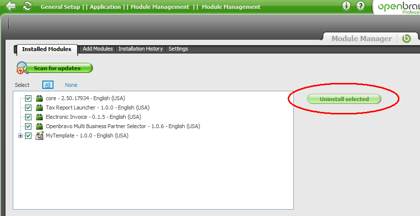 | Summary | 0014253: Using the link "All" for selecting all the modules does not activate the Uninstall button | |||||||