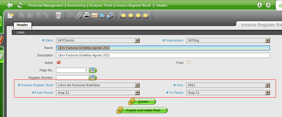 | 2011-06-29 17:23 | hgbot | Fixed in SCM revision | http://code.openbravo.com/erp/pmods/org.openbravo.module.invoicesregisterbook/rev/786b08e4059737779a19cffd250a15da58b336be [^] => http://code.openbravo.com/erp/pmods/org.openbravo.module.invoicesregisterbook/rev/67b54cfcb98c0db616b0a619f021aad27cff6c4a [^] |