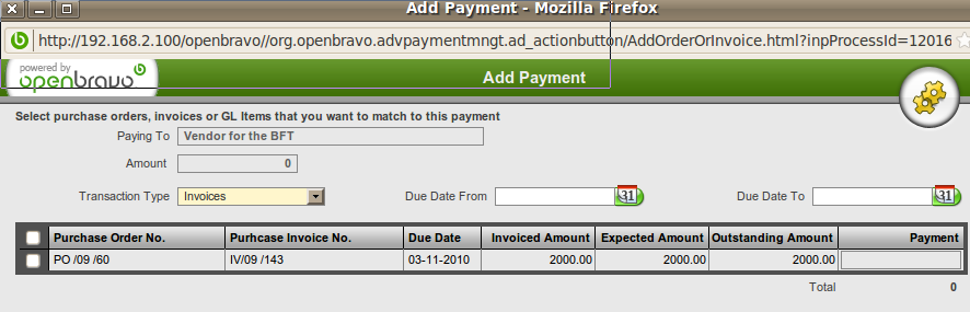 | 2010-10-20 10:01 | hgbot | Fixed in SCM revision | => http://code.openbravo.com/erp/pmods/org.openbravo.advpaymentmngt/rev/4017cdbfaf79c15593100133689fecc8ec73fe71 [^] |