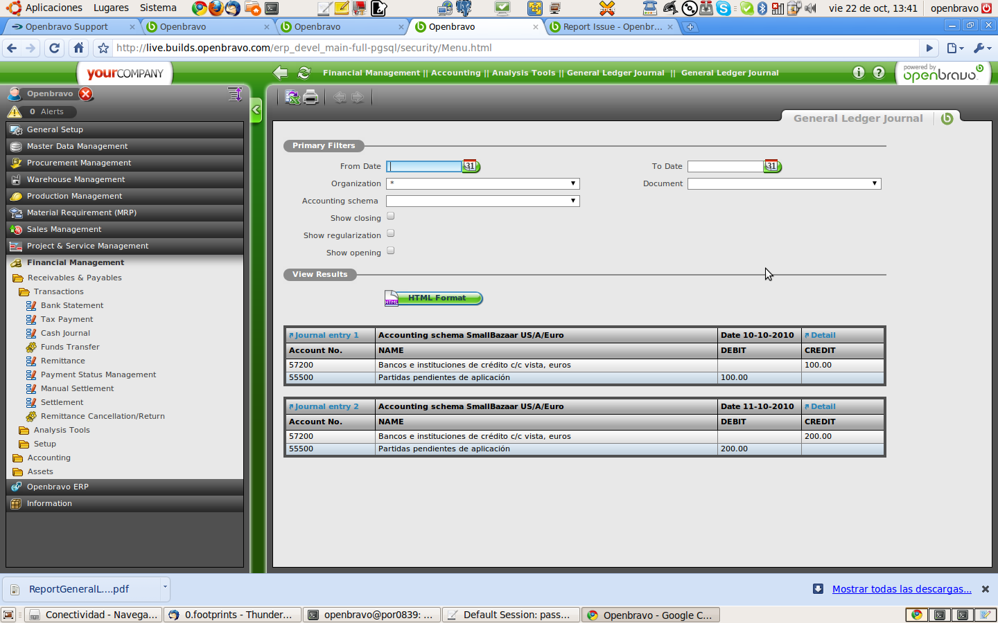 | defect | [Openbravo ERP] 09. Financial management | major | always | 2010-10-22 13:42 | 2010-12-21 00:00 | |||