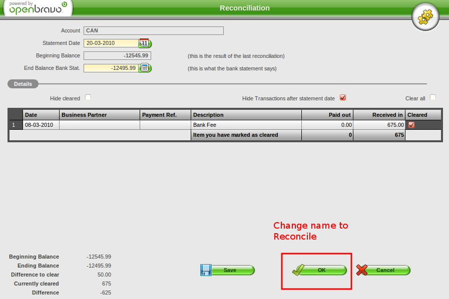 | Summary | 0015224: Change the name of OK button in the Manual reconciliation popup to Reconcile | |||||||