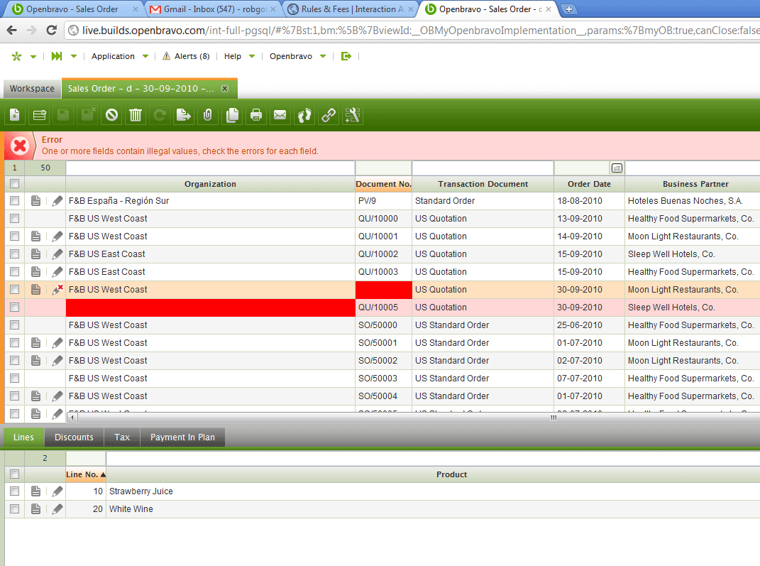 Tested it on live builds and had the "One or more rows..." pink message once but then it disappeared in subsequent attempts. See two screenshots attached. The second case appeared when switching from form to grid. Could you test and check again to see what´s going on? Thanks. |