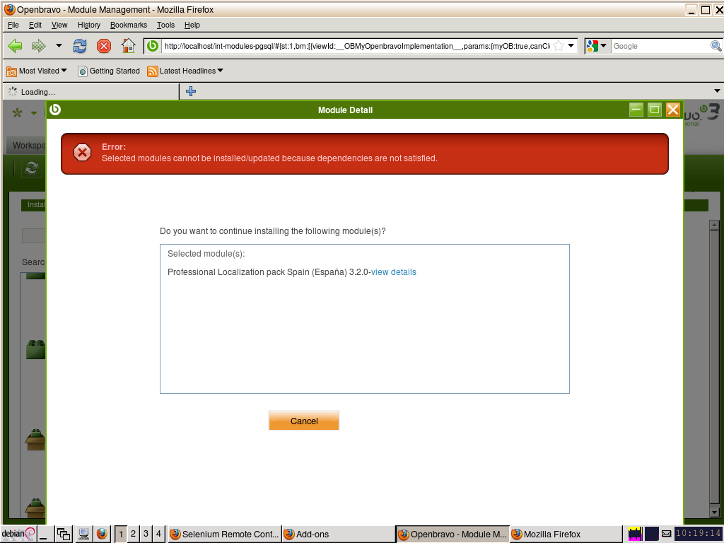 | Steps To Reproduce | 1. Login as Openbravo/openbravo 2. Active the instance to make it proffesional 3. Activate hearbeat 4. Go to module management console. Try to install SPLP You will see the error. See attach | |||||||