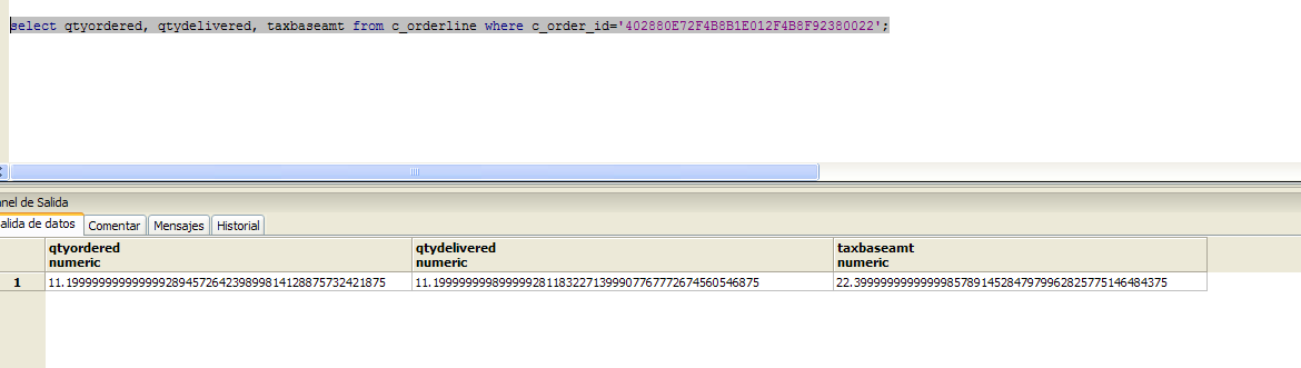 Notice as well that the column taxbaseamt is calculated and has the same problem. This makes even worse the issue