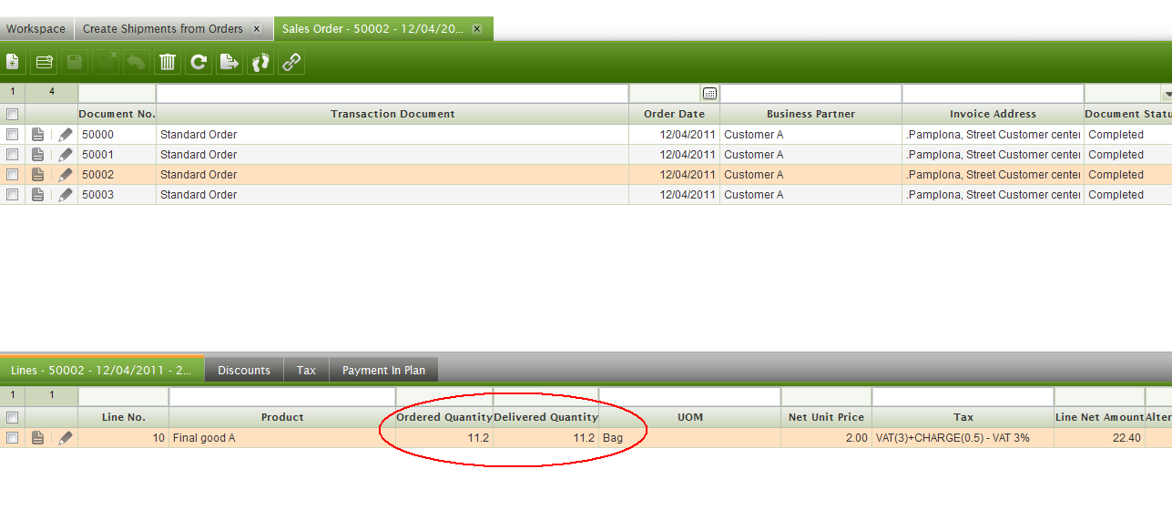 salesorderline.png: You can see it says 11,2 and 11,2 but still you can delivered