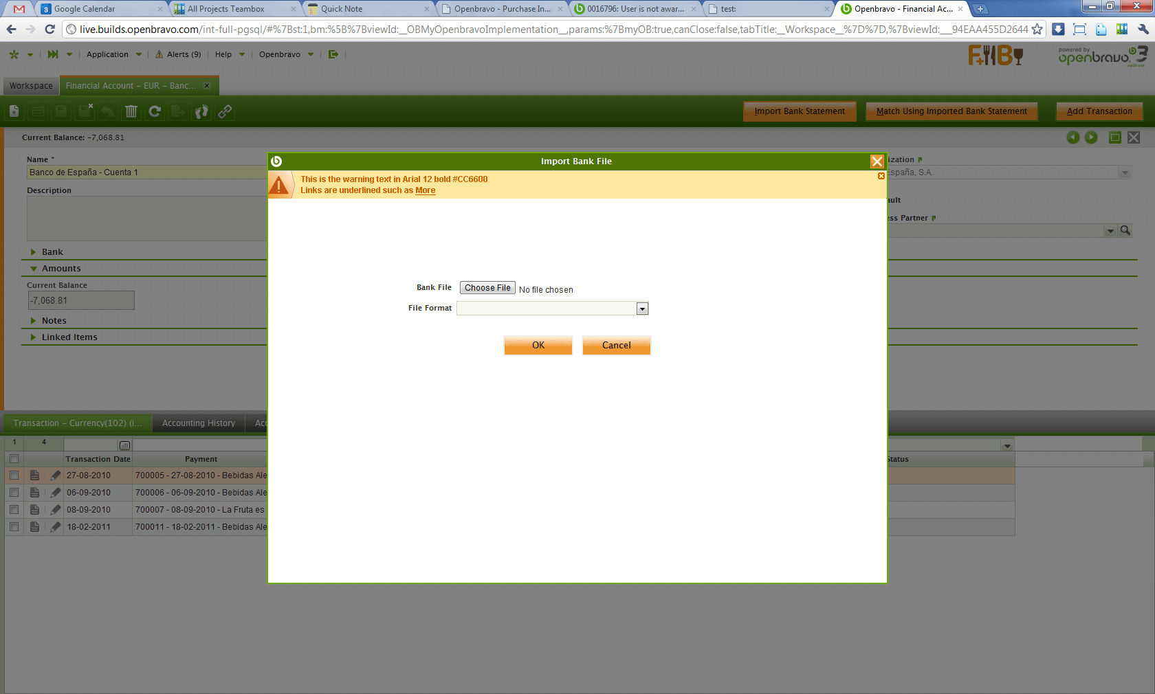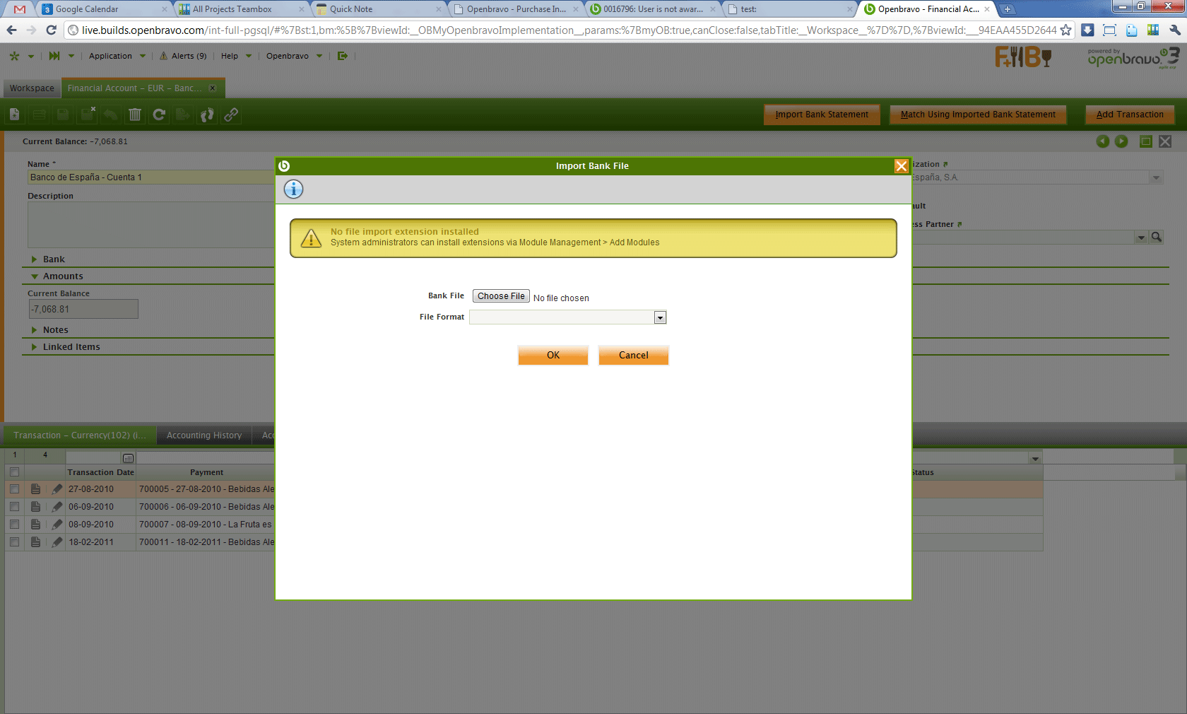 | Summary | 0016796: User is not aware that bank statements cannot be imported without the proper modules installed | |||||||