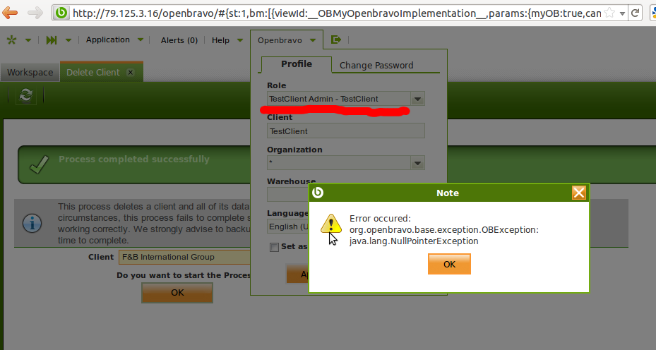 | Description | When a client is deleted, its role remains selectable from the profile widget. If selected, a null pointer exception is thrown. | |||||||