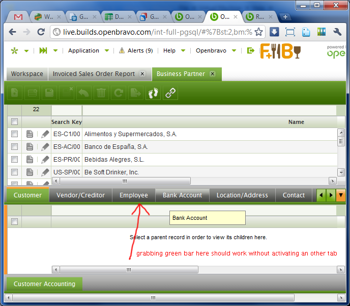 | Description | The horizontal splitter bar between parent and child levels can normally be dragged up and down. However in some cases this is not possible: Situation 1: Splitter bar is filled entirely with tabs. Now it´s tricky to grab the bar without accidentally activating another tab. Situation 2: Child level is maximized. Now, the user´s natural reaction is to drag the bar down in order to view the header level again. This is not possible. I have observed users doing it (i.e. Paolo in his demo for Bob)and consider this is a severe usability issue. | |||||||