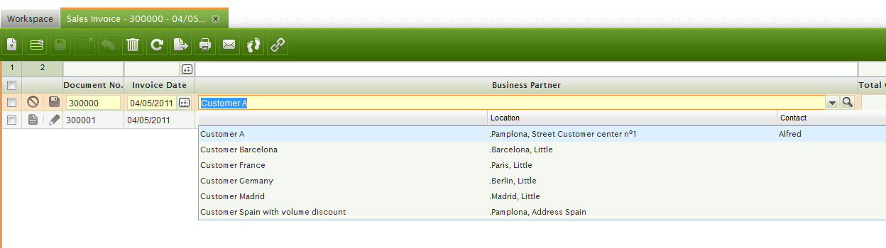 | Steps To Reproduce | 1. Login as Openbravo/openbravo 2. Change the role to QA Admin 3. Go to sales invoice and create a header in grid view. Save 4. Create a new one and save. 5. Click the edit grid button for the first record. The focus goes to Business partner but displaying the combo box so if you click the arrow down you cannot move to the next record Expected behaviour: The focus has to go to the business partner but the combo box must not be displayed Note: It happens the same if you are in lines with the product | |||||||
