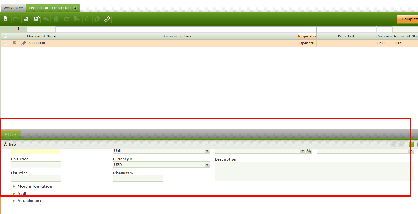 | Steps To Reproduce | 1. Go to requisition window 2. Create a header 3. Move to lines 4. Click new in form view. Notice that you don't the first row and you need to scroll up See attach | |||||||