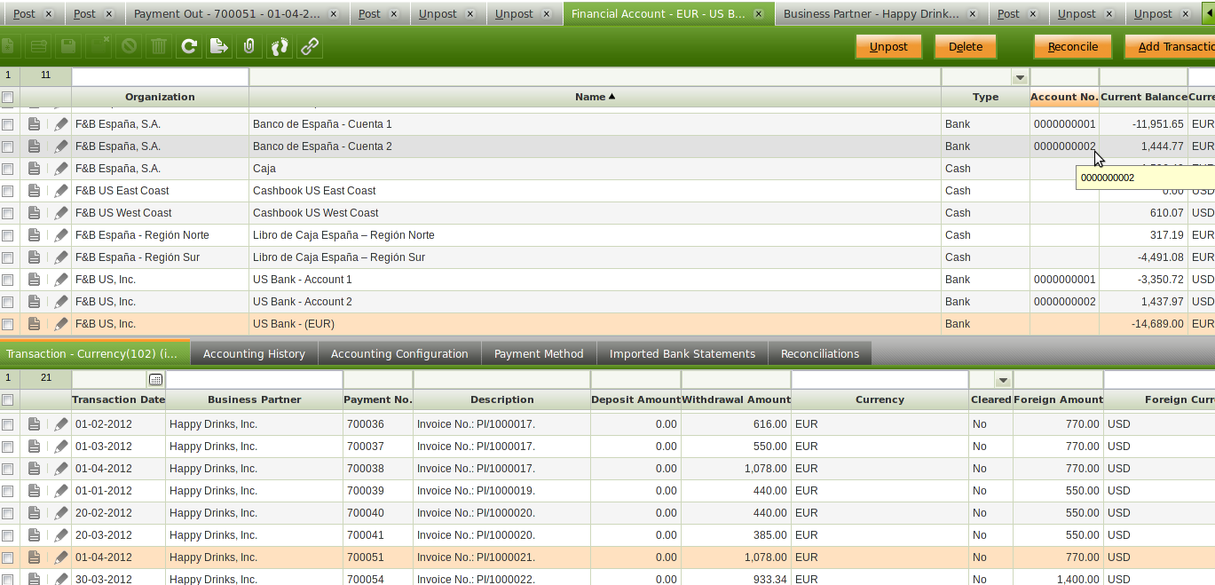 | defect | [Openbravo ERP] 09. Financial management | major | always | 2011-05-19 16:54 | 2011-05-30 19:39 | |||