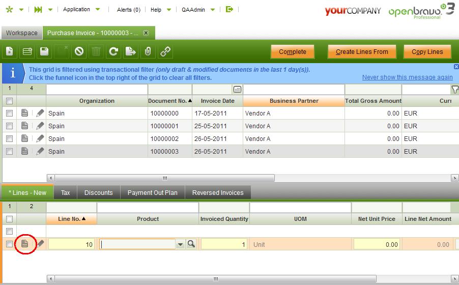 0017377: It is not possible to fill Purchase Invoice lines in grid mode