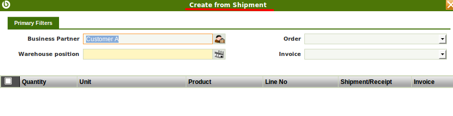 | Description | The title of Create from popups is not correct. For example, on the goods shipment it is: "Create from Shipment", but you are not create the lines from a shipment, but from an order. So the title should be something like: "Create lines from order" In Sales invoice, it is "Create from invoice". Again, this should be something like "Create lines from order or shipment". | ||||||||||